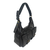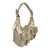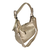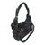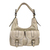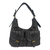 Deze handtas is van PU kunstleer en is afgezet met platte studs, wat de tas een stoere uitstraling geeft. De tas heeft een klep met draaiknop en is tevens afsluitbaar met een rits. De tas heeft drie vakken, waarvan het middenvak een rits heeft. Aan de ene binnenzijde zitten twee gsm vakken, aan de andere binnenzijde een vak met rits. De schouderriem is instel- en afneembaar.